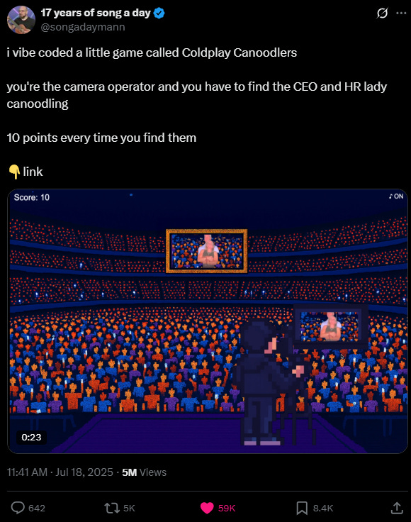 Remember the Coldplay Kiss Cam scandal? A guy vibe coded that into a game within a day: