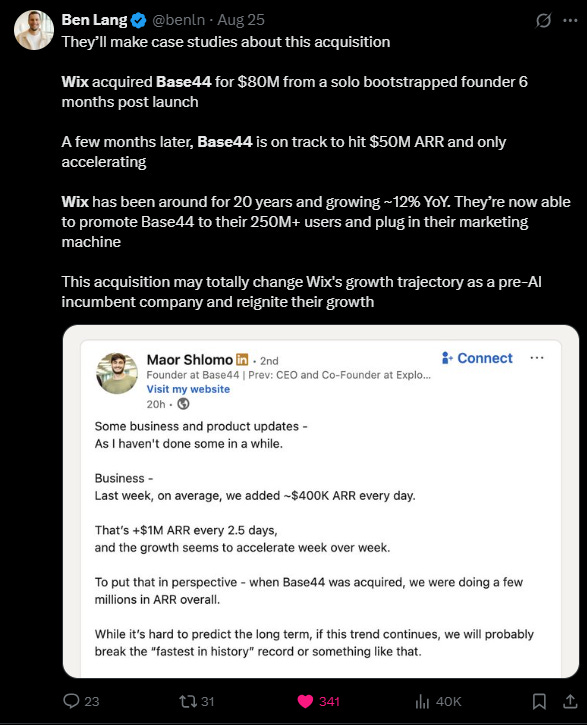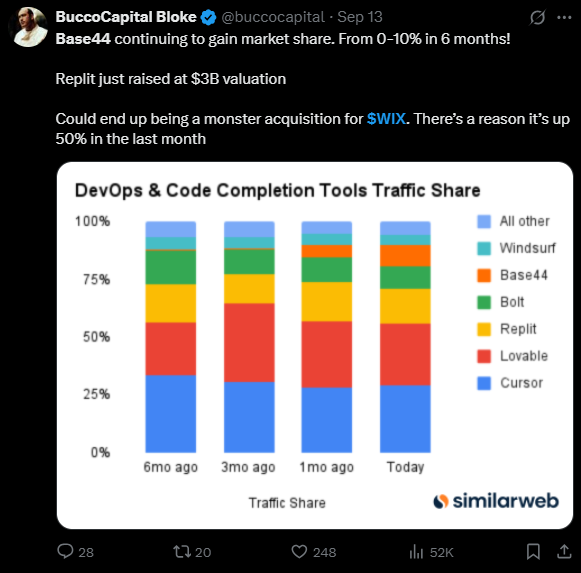 Figma would be quite a bit later to the game vs. someone like Wix who was able to scoop up Base44 for $80M (amazing buy so far), but nonetheless the acquisition route would get them up the learning curve far more rapidly. All the while, Figma’s seeing its core business attacked by such upstarts as AI-native website builder Framer ($2B val/500K MAU):