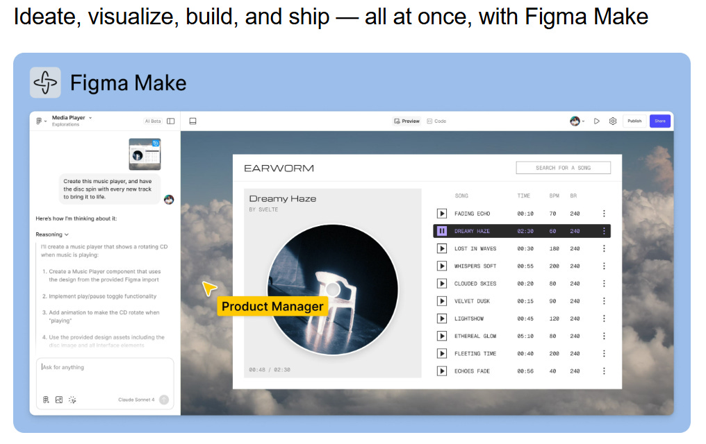 Replit has robust integrations to simply flip your wireframes from Figma into Replit’s platform, then build out the functionality via its Agents. But they’ve also bolstered the native UX functionality with design-phase planning in new projects and tools like Visual Editor, which allows you to make edits directly to the UI with real-time code updates. Conversely, Figma has always supercharged the speed to ship software with resources like Figma Dev Mode, but now they’re expanding their purview with native prototyping via Figma Make: